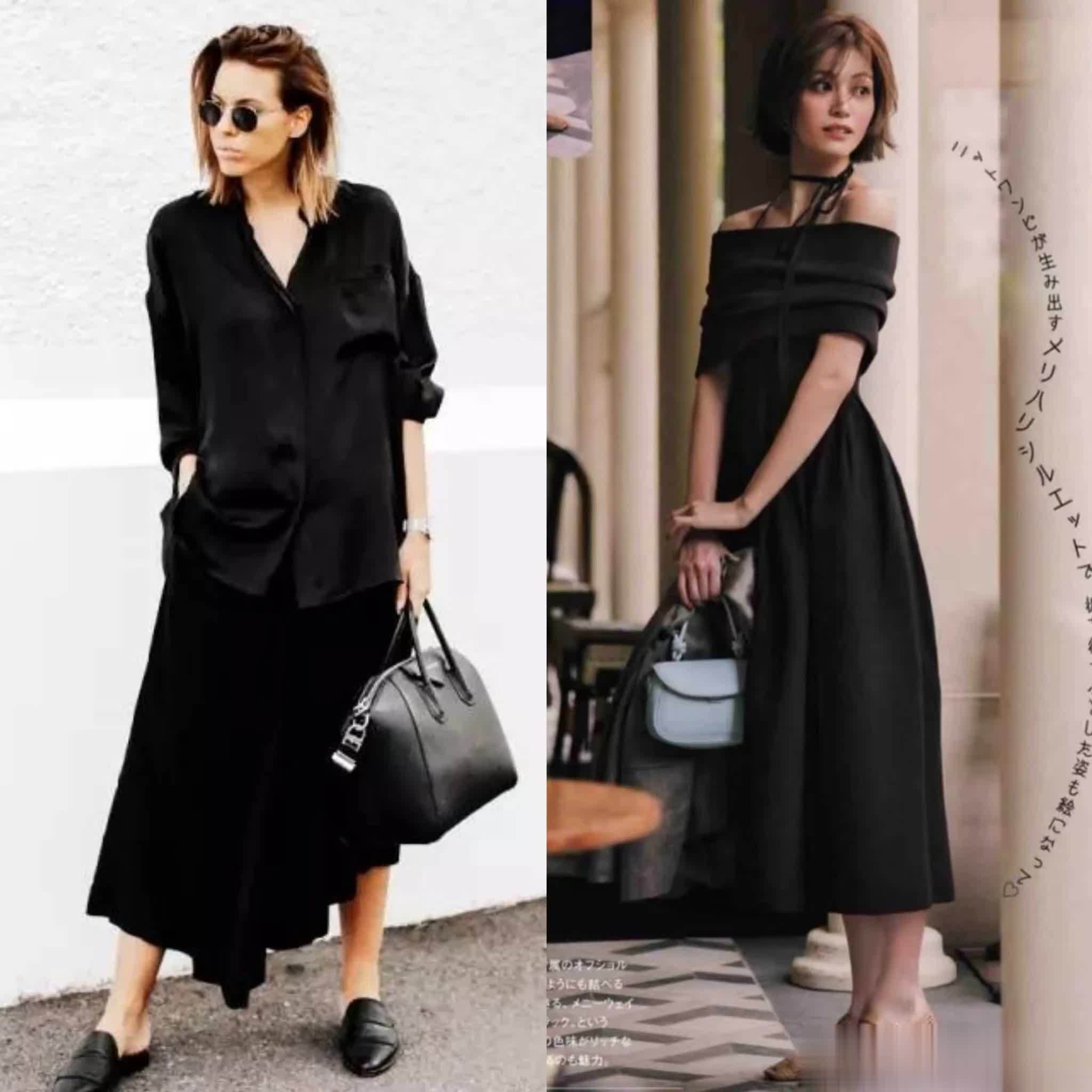 夏天喜欢穿黑色的女生,可以给自己准备一条黑色的衬衫裙,既有黑色衬衫的利落干练,也有黑色长裙的优雅端庄,无论是上班还是约会都OK。
