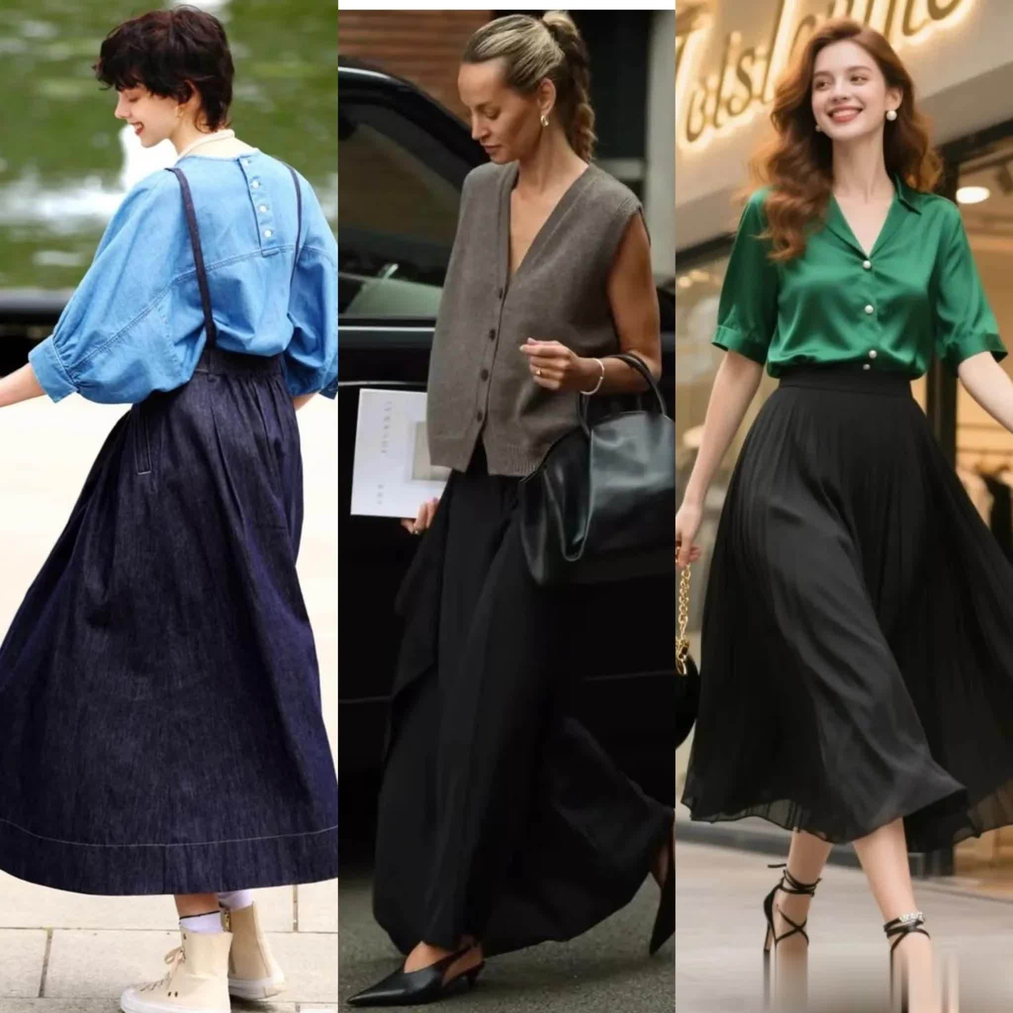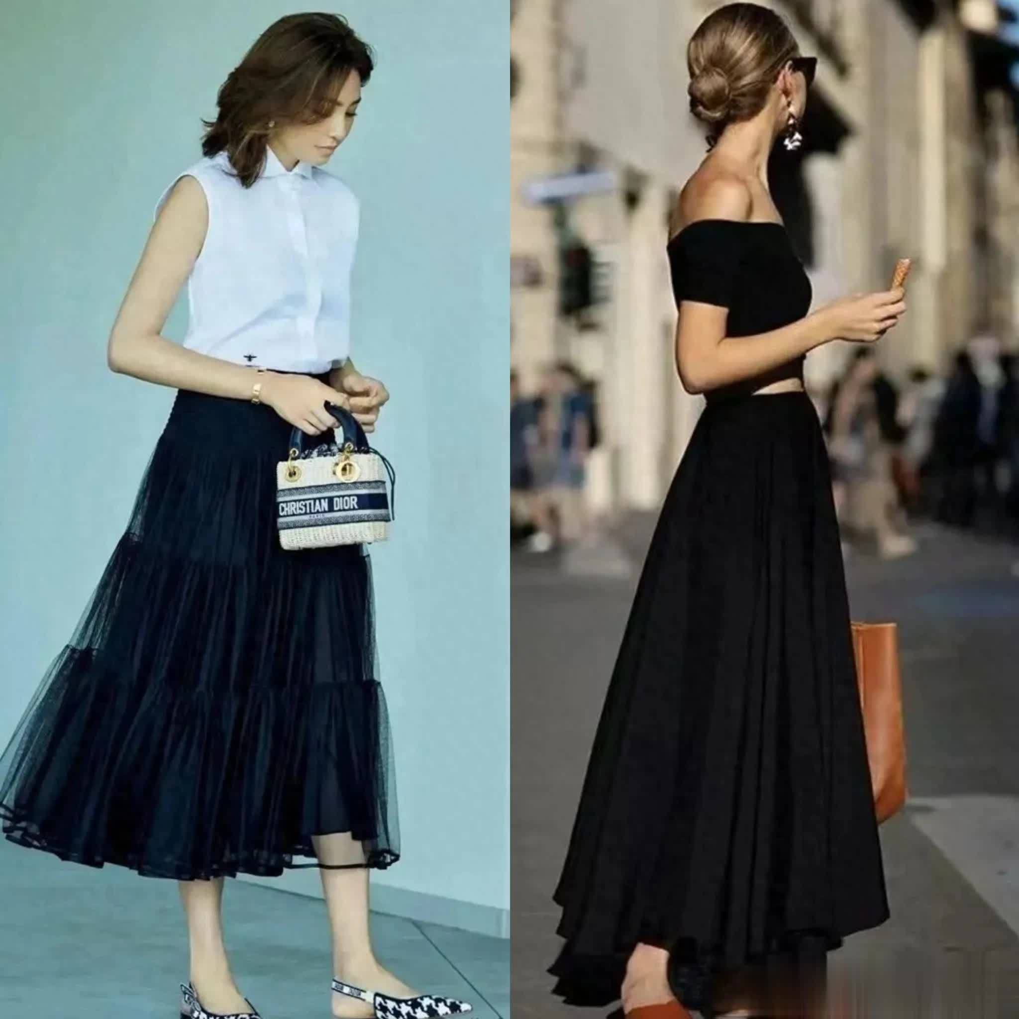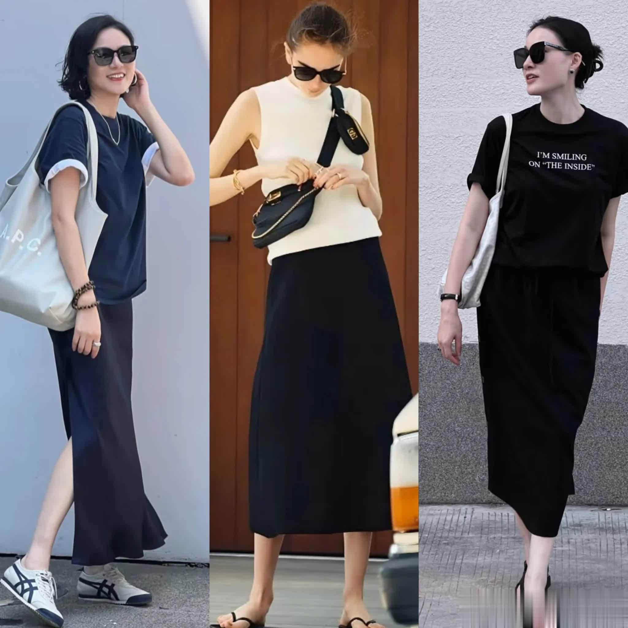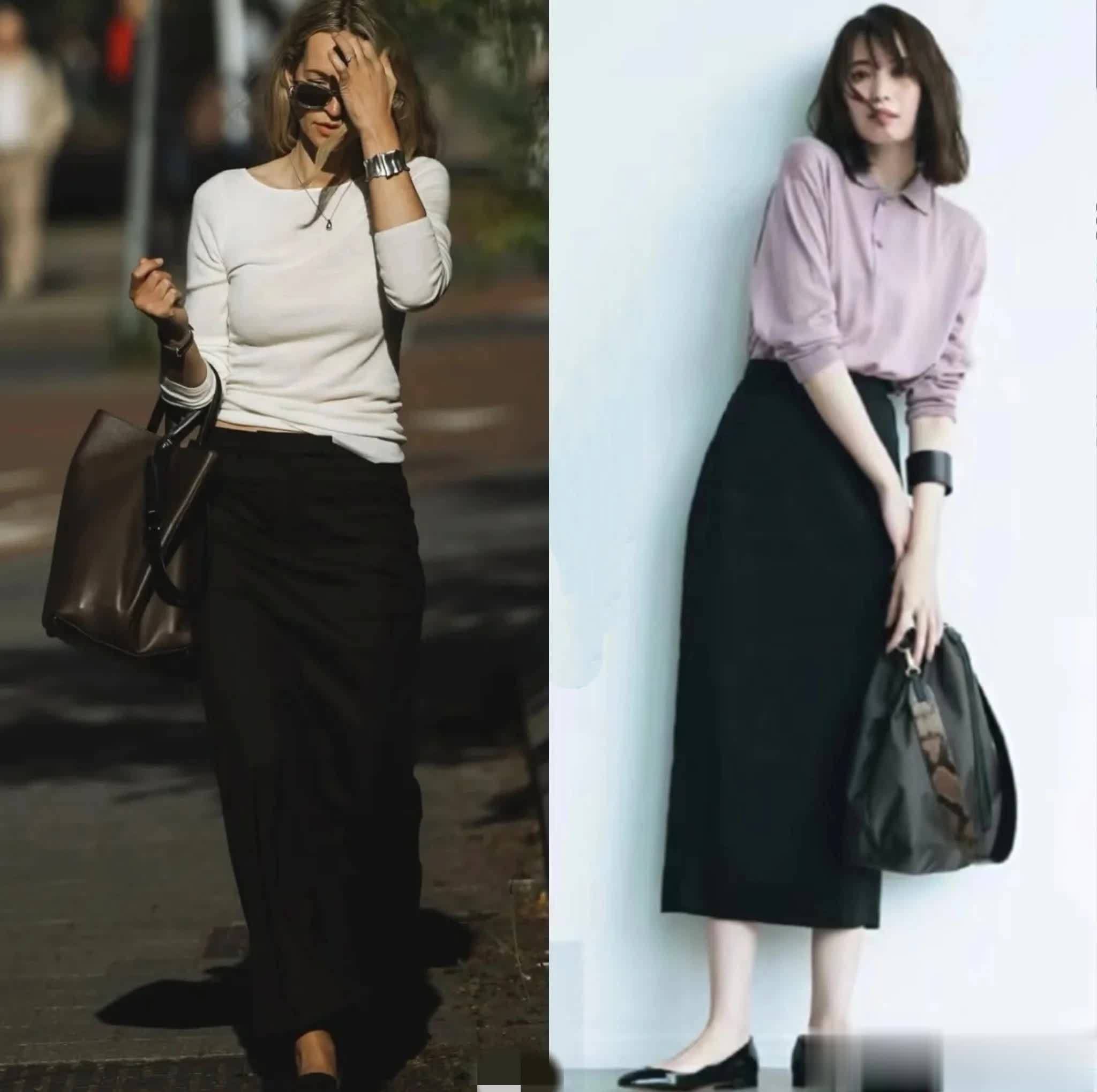 黑色直筒裙,它直线条的剪裁展现出干练的气质,适合早八打工人,无论是搭配衬衫、西装,还是针织衫,都能轻松穿出专业形象,也可以搭配简单的T恤衫,既端庄又有时尚感。